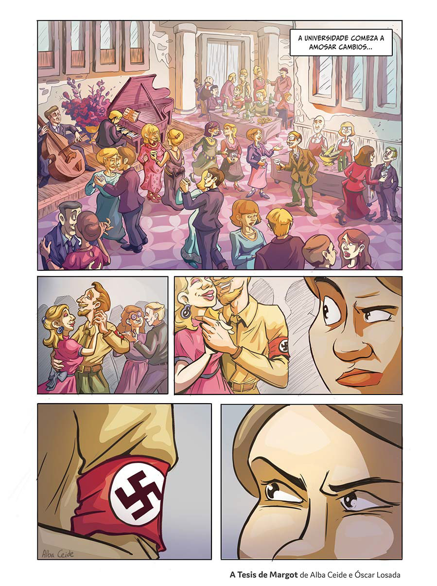 I am responsible for the drawing, coloring, and lettering of this project, while journalist Oscar Losada serves as the writer and editor. Together, we have created a comic that not only showcases Margot's achievements but also aims to reclaim her legacy as an exceptional researcher, particularly in light of the efforts by the Nazi regime to erase her memory.